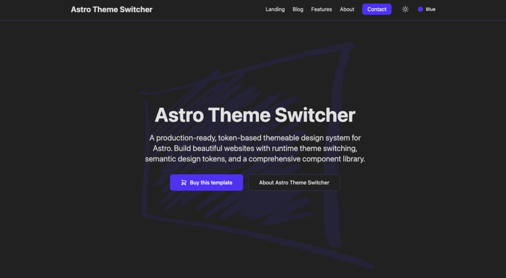 A production-ready, token-based themeable design system for Astro. Build beautiful websites with runtime theme switching, semantic design tokens, and a comprehensive component library. View the demo.